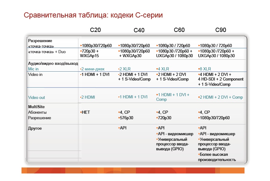 Полное соответствие стандартам телевидения высокой четкости 1080p, поддержка всех возможностей обычных терминалов ВКС
